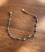 A bracelet featuring the iconic evil eye motif, with a variety of colours and stone variations.