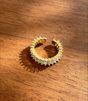 A one-size adjustable bangle adorned with various colourful and shaped stones for a chic and playful feel.