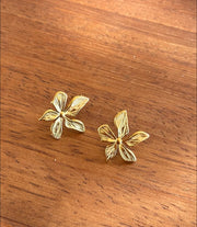Mixed metal earrings with an asymmetric design. One earring features gold on top and silver at the bottom, the other reverses the mix.
